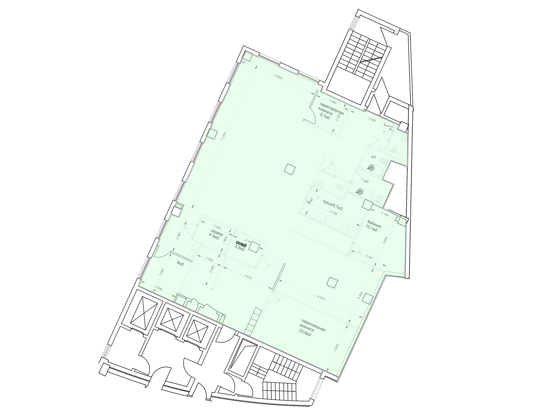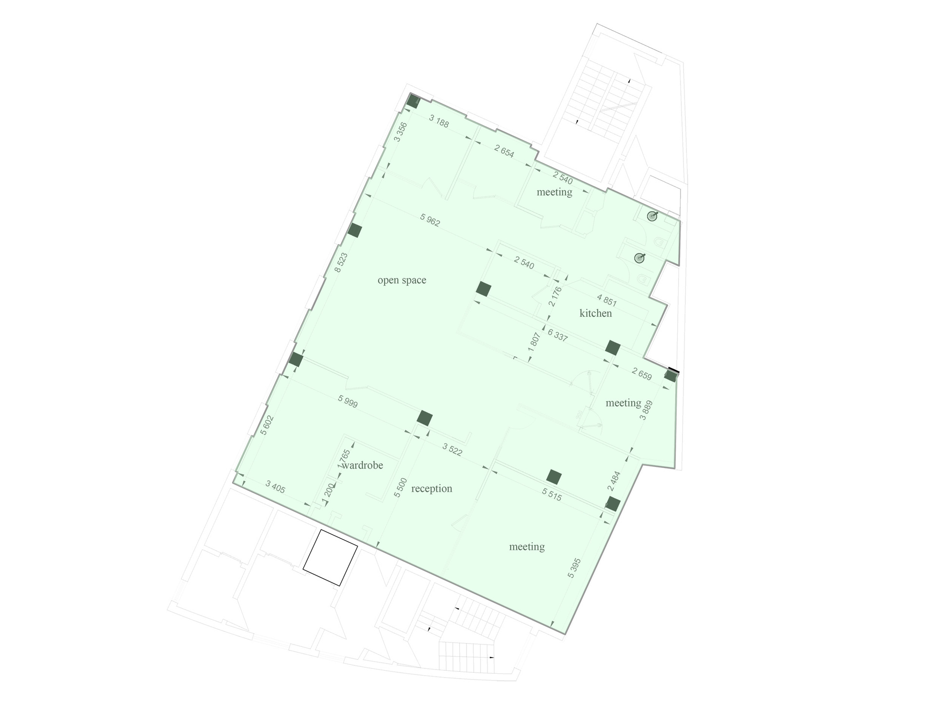 В БЦ предлагаются офисы и офисные блоки, рассчитанные на компании со средним количеством сотрудников. Большинство помещений занимают площадь 150-350 кв. м, хотя есть офисы площадью 103 кв. м, а также блоки от 500 кв. м и более. Благодаря приточно-вытяжной вентиляции и центральному кондиционированию в офисах и помещениях общего доступа обеспечивается комфортный микроклимат.